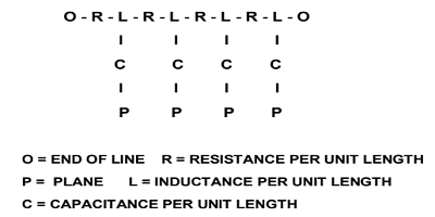 可以看出,  沿著傳輸線的長度分布著電容,電阻和電感。如前幾篇文章所述,這些元件被稱為寄生元件,它們以每單位長度的電感與每單位長度的電容器之比來建立傳輸線的行為。此外,它們確定線路的阻抗,如公式1所示。